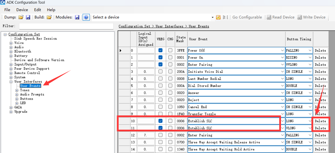 User Interface → User Events page, Delete that 2 Establish SLC events. and click write device to save the settings. The Bluetooth audio amplifier will not reconnect samrtphone automatically after power on.