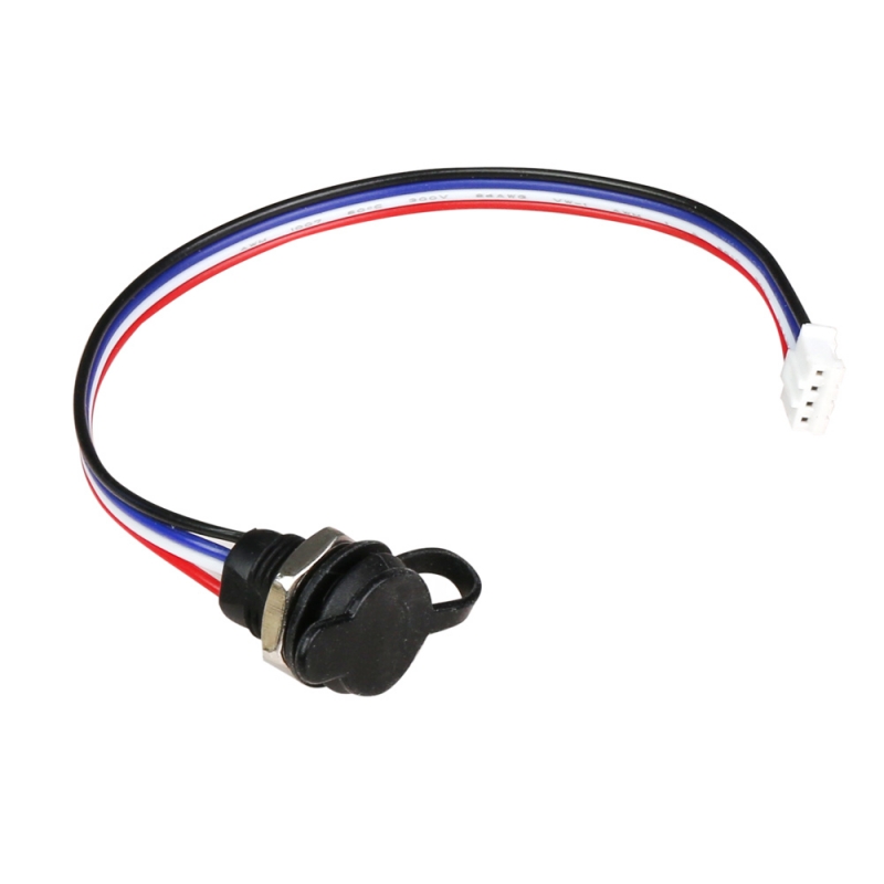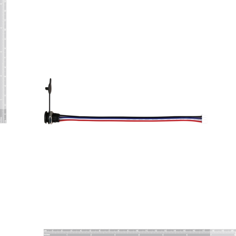This panel mount cable is great for making USB Host or (some) client connections with a panel-mount setup. On the small panel-mount side you get a USB C connector, the other end has power, ground and D+ / D- lines. The panel mount part is very small, only about 0.5 inch diameter, and a JST PH cable on the other end for quick integration.